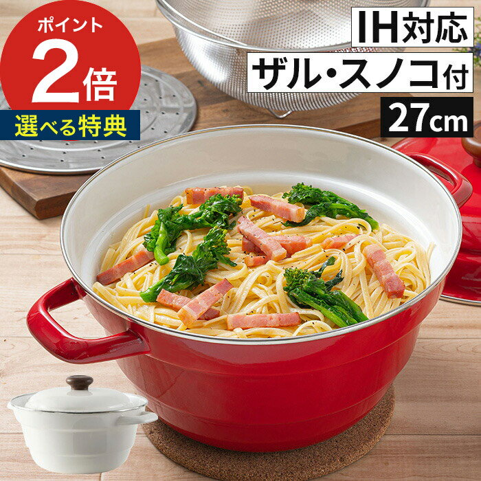 両手鍋 ih おしゃれ 富士ホーロー 27cm オールインワン・プラス N-27FW ザル・スノコ付 ホーロー ih 深型 カレー鍋 パスタパン パスタ鍋 おしゃれ 蓋付き シンプル 琺瑯 ほうろう 万能 天ぷら鍋 揚げ物 蒸し器 多機能鍋 マルチポット マルチパン ハニーウェア Honey Ware